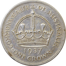 | Crown 1937, KM34 Obv. George VI, Rev. Crown |