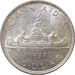 Dollar 1937, KM37 Obv. George VI, Rev. Canadian Canoe |