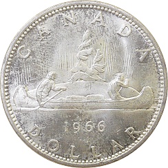 | Dollar 1966, KM64.1 Obv. Elizabeth II, Rev. Canadian Canoe |