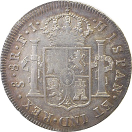 | 8 Reales 1816 FJ, KM80 Obv. Ferdinand VII, Rev. Shield |