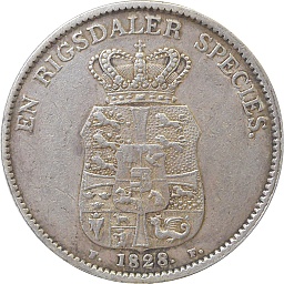 | Speciedaler 1828FF, KM695.1, Dav73 Obv. Frederik VI, Rev. Shield |
