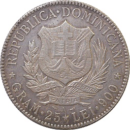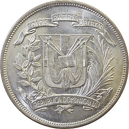 ペソ。自由の女神。当時の政情不安を反映してか、この時代の大型銀貨としては珍しく、銀の品位が0.350と低くなっています。グレシャムの法則の通り広く流通したため、状態のよいものは希少です。フィラデルフィアミント。 |