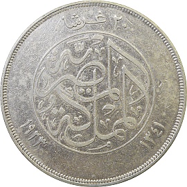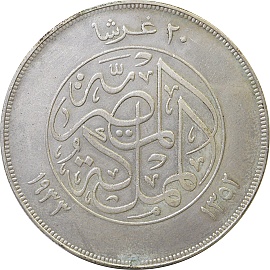 | 20 Piastres 1923 H, KM338 Obv. Fuad I, Rev. Legend |