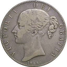 Crown 1845, KM741, Dav105 Obv. Victoria (Young), Rev. Shield |