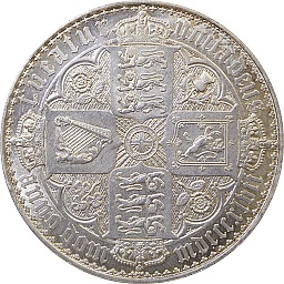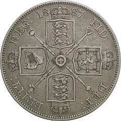 2フローリン。ヴィクトリア女王、ジュビリー。2フローリンという額面はこのコインだけです。裏面の紋章はイングランド、スコットランド、アイルランドを表しています。ロンドンミント。 |