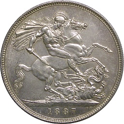 Crown 1887, KM765, Dav107 Obv. Victoria (Jubilee), Rev. St. George |