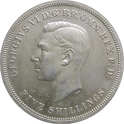 クラウン。ジョージ6世。ジョージ5世の死去により即位したエドワード8世が、わずか1年足らずで王位を放棄したため、ジョージ6世が王位につきました。入手の容易なコインです。ロンドンミント。 |