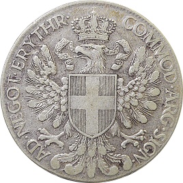 | 5リレ/タレーロ。ウンベルト1世。イタリア国王の肖像が描かれた植民地時代のコインです。が、これはオリジナルではなさそうです。リストライクなのか、レプリカなのか、現在調査中です。オリジナルはローマミント。 | タレーロ。これも植民地時代に発行されたコインで、女性の肖像が描かれています。当時、アフリカ大陸で貿易用に広く流通していた、マリア・テレジアのターレル銀貨に対抗して、イタリア政府が発行しました。ローマミント。 | |||||||