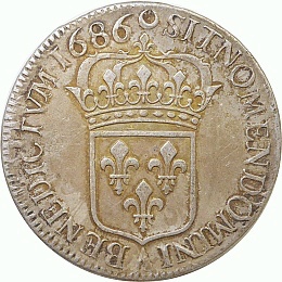 Ecu 1686 A, KM255.1, Dav3809 Obv. Louis XIV, Rev. Crowned Arm |