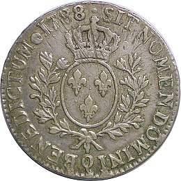 Ecu 1788 Q, KM564.13, Dav1333 Obv. Louis XVI, Rev. Crowned Arm & Wreath |