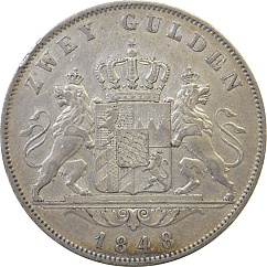 Bavaria 2 Gulden 1848, KM819, Dav594 Obv. Ludwig I, Rev. Shield |