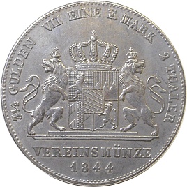 Bavaria 2 Thaler 1844 (replica), KM814, Dav589 Obv. Ludwig I, Rev. Shield |