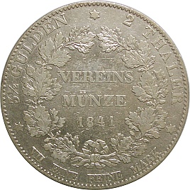 Hesse-Darmstadt 2 Thaler 1841, KM310, Dav702 Obv. Ludwig II, Rev. Wreath |