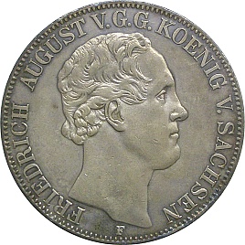 | ザクセン王国・2ターレル。フリードリッヒ・アウグスト2世。このコインは比較的状態もよく、美しいトーンがかかっていて、お気に入りの1枚です。ドレスデンミント。 |