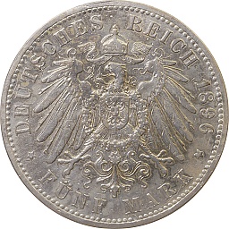 Anhalt-Dessau 5 Mark 1896 A, KM24, Dav511 Obv. Freidrich I, Rev. Shield |