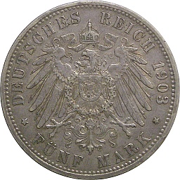 Saxony 5 Mark 1903 E, KM1258, Dav903 Obv. Georg, Rev. Shield |