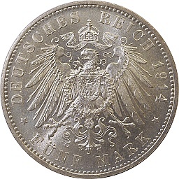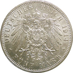 Bavaria 5 Mark 1914 D, KM1007, Dav620 Obv. Ludwig III, Rev. Shield |