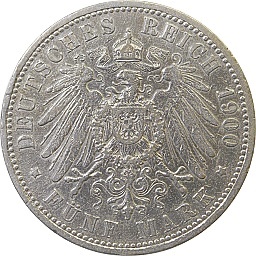 Hesse-Darmstadt 5 Mark 1900 A, KM369, Dav711 Obv. Ernst Ludwig, Rev. Shield |