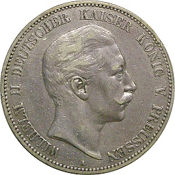 Prussia 5 Mark 1904 A, KM523, Dav789 Obv. Wilhelm II, Rev. Shield |