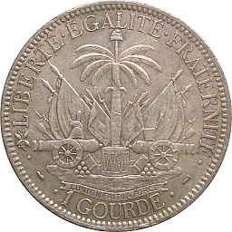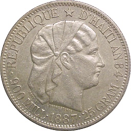 | Gourde 1887, KM46 Obv. Young Farmerette, Rev. Shield |