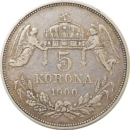 | 5 Korona 1900, KM488, Dav123 Obv. Franz Joseph, Rev. Angel Crown |
