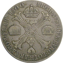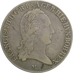 ミラノ公国・クロシオーネ。フランシスコ2世。オーストリア領だった時代に発行されたコインで、銘文を除いて当時のオーストリアのコインと同じデザインになっています。ミラノミント。 |