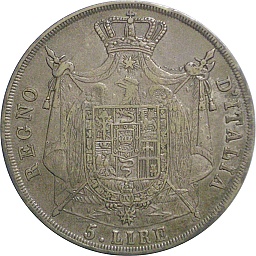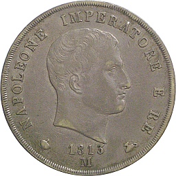 5 Lire 1813 M, KM10.4, Dav202 Obv. Napoleon I, Rev. Shield |