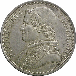 教皇領・スクード。ピオ9世。英語読みだとピウス9世、ローマ教皇です。教皇領は1929年に世界最少の独立国家・バチカン市国になります。現ローマ教皇はフランシスコ。ローマミント。 |