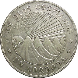 | コルドバ。通貨の単位の由来にもなった、スペインの探検家・コルドバの肖像が描かれています。裏面には、現在の国章にも描かれている、山々と太陽がデザインされています。ヒートン(バーミンガム)ミント。 | ||||||||