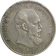 | Rouble 1893, Y46, Dav292 Obv. Alexander III, Rev. Shield |