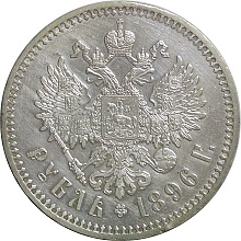 Rouble 1896, Y59, Dav293 Obv. Nicholas II, Rev. Shield |